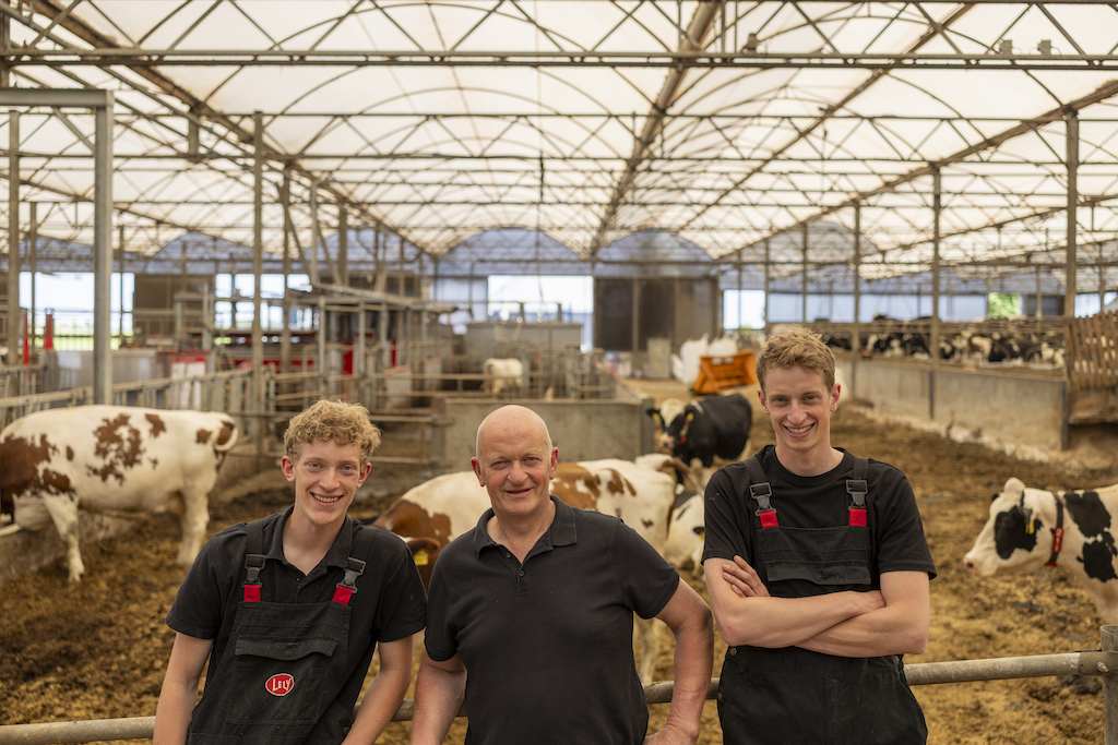 De koeien verblijven in een moderne serrestal, waar licht, lucht en comfort centraal staan. Daarnaast werkt het bedrijf met een mestscheider voor het hergebruik van vaste mest als strooisel, en een biogasinstallatie die mest omzet in duurzame energie. Deze combinatie van oplossingen draagt bij aan een circulaire en toekomstbestendige bedrijfsvoering.